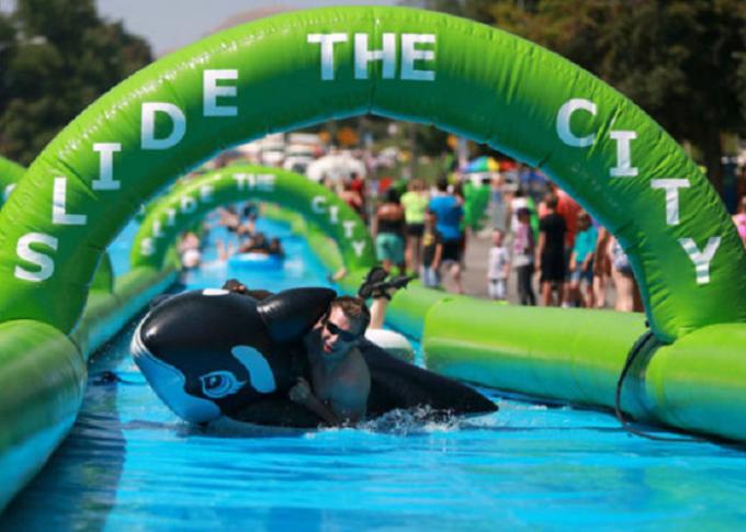50 मीटर लंबाई Inflatable पर्ची और आउटडोर खेलने के लिए पर्यावरण के अनुकूल स्लाइड
